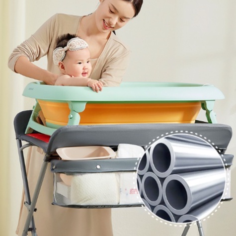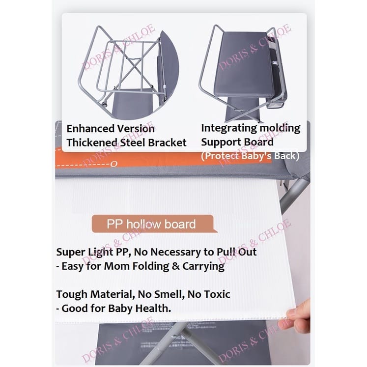• ✅ Ready Stock. ✅Upgraded Version:--With Enhanced version, allows care givers move around the changing table more easy and safely.- keep the table stable.Able to load up to with enhanced version. ✅V Shape Folding:-Simply just pull to fold from the center only, without removing the supporting board. ✅Four adjustable heights level:-Suitable for all caregivers with different heights and prevent back strains and pains. ✅Waterproof:-Make changing top easy to maintain good hygiene. ✅More storage space with easier assess:- 3 compartments to organize your baby care items and very easy to access.- Additional bottom organizers for bay bath towers ✅Strong Frame:- A sturdy frame keep the table stable.- Able to load up to 50 KG