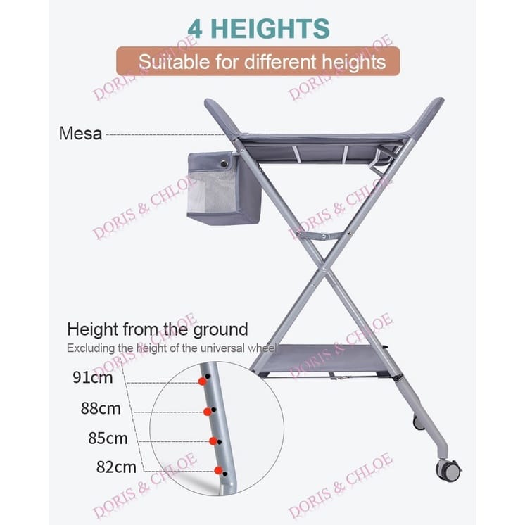 Baby Diaper Changing Table with wheels ?Foldable+4highs adjustable? Clothes Changing/Massage/ Shower/Reduce Back Pain|,|