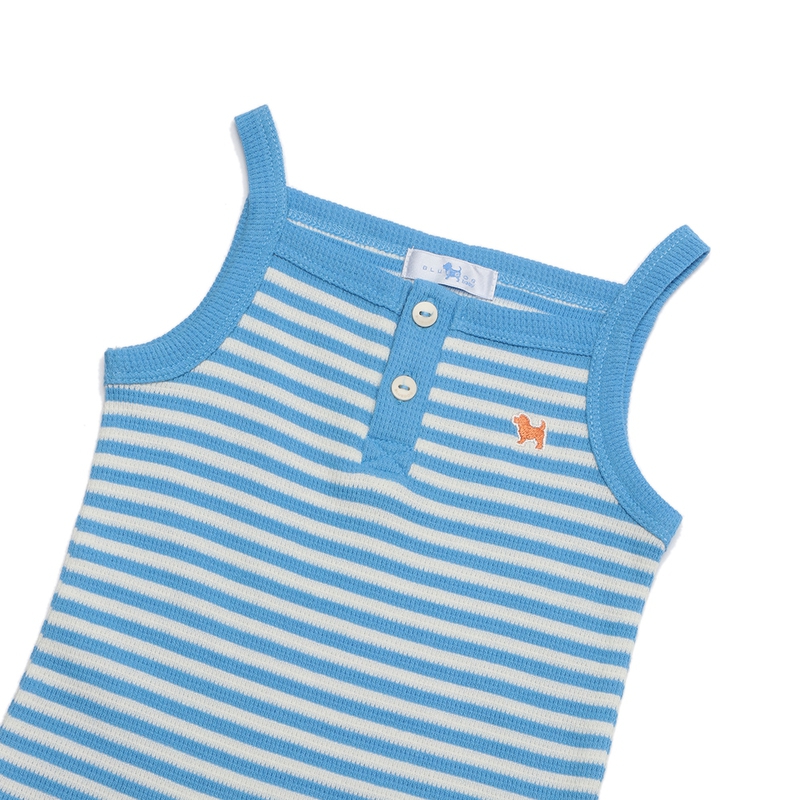 • This garment is made of waffle-textured cotton and features shoulder straps, tone-on-tone color combination, and stripes.