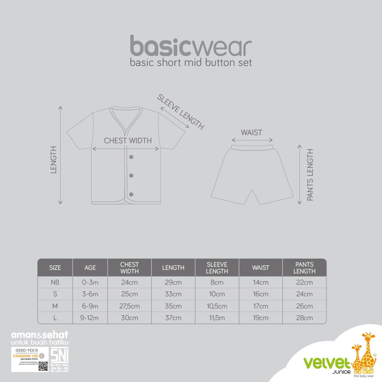 Velvet Junior is the first baby clothing product in Indonesia that has received international safety certification Standard 100 Class 1 by Oeko-Tex.